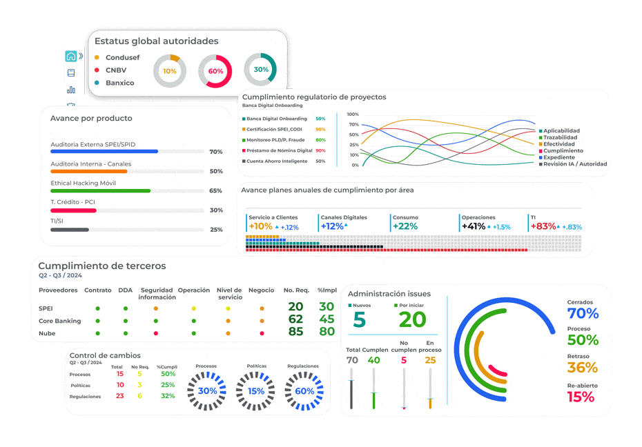 Visualiza de manera integral todos los temas de cumplimiento, agiliza su seguimiento y la toma de decisiones.